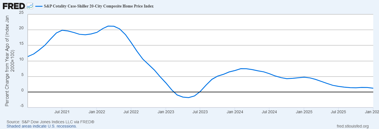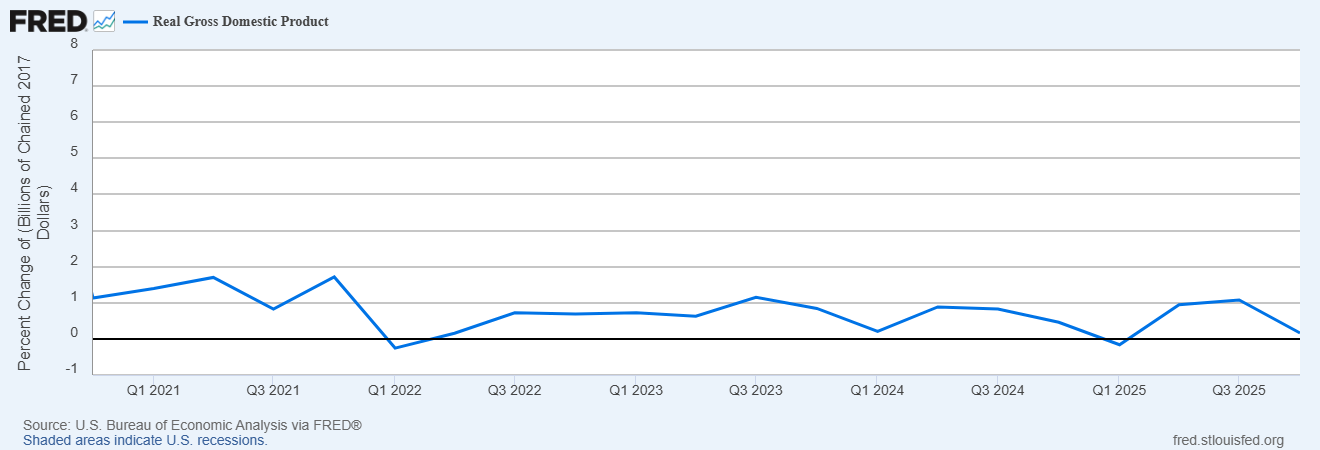 Real (inflation-adjusted) GDP growth slowed in Q4 (+1% annualized growth) with a slowdown in consumer spending and reduced government spending driven by the prolonged government shutdown.